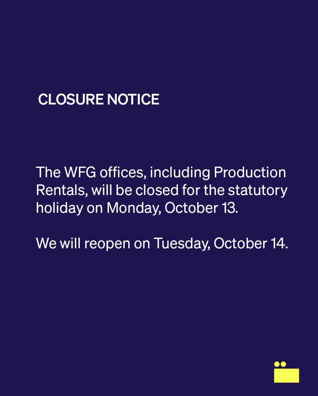 WFG Office Closure Notice